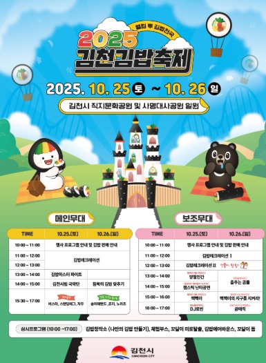 독자 여러분, '2025 김천 김밥축제'는 한국인의 일상과 추억 속에 깊이 자리한 김밥을 주제로, 김천의 맛과 멋, 그리고 문화를 전 세계에 알리는 특별한 미식 축제가 될 것입니다. 올해로 두 번째를 맞이하는 이 축제는 "김천은 김밥천국"이라는 재치 있는 슬로건 아래, 2025년 10월 25일부터 26일까지 김천시 직지문화공원 및 사명대사공원 일원에서 펼쳐집니다.